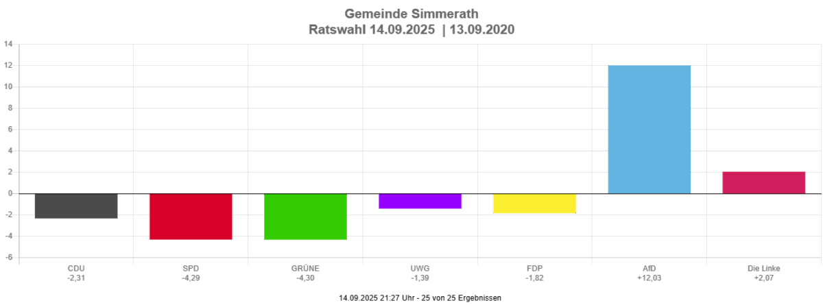 Bei ihrem ersten Wahlantritt konnte die AfD, 12,03 Prozent der Stimmen in Simmerath holen. „Mit vier Sitzen im Gemeinderat haben wir unser gestecktes Wahlziel erreicht und können nun eine solide Fraktion bilden“, sagte AfD-Kreissprecher Andreas Klöcker.